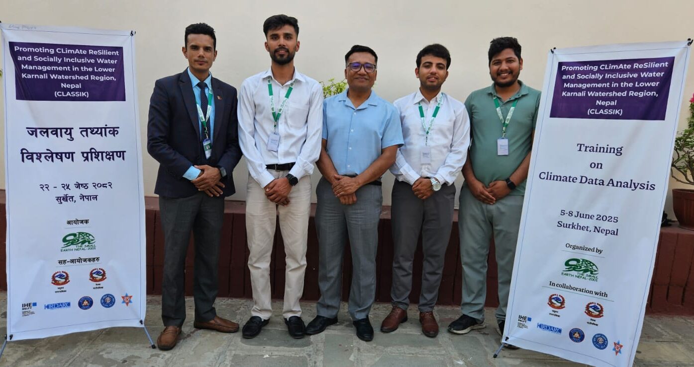 The Small Earth Nepal (SEN) successfully concluded a four-day training on “Climate Data Analysis and Visualization” in Surkhet, Nepal from June 5 to 8, 2025, as a part of the project – Promoting CLimAte ReSilient and Socially Inclusive Water Management in the Lower Karnali Watershed Region, Nepal (CLASSIK). IHE Delft, The Netherlands, Central Department of Geology, Tribhuvan University (CDGL-TU), Karnali Integrated Rural Development and Research Centre (KIRDARC) and Tharu Women Upliftment Center (TWUC), Bardiya are the partners of the project. Mid-West University, Surkhet and Madhuwan Municipality and Geruwa Rural Municipalities collaborated in organizing this training.