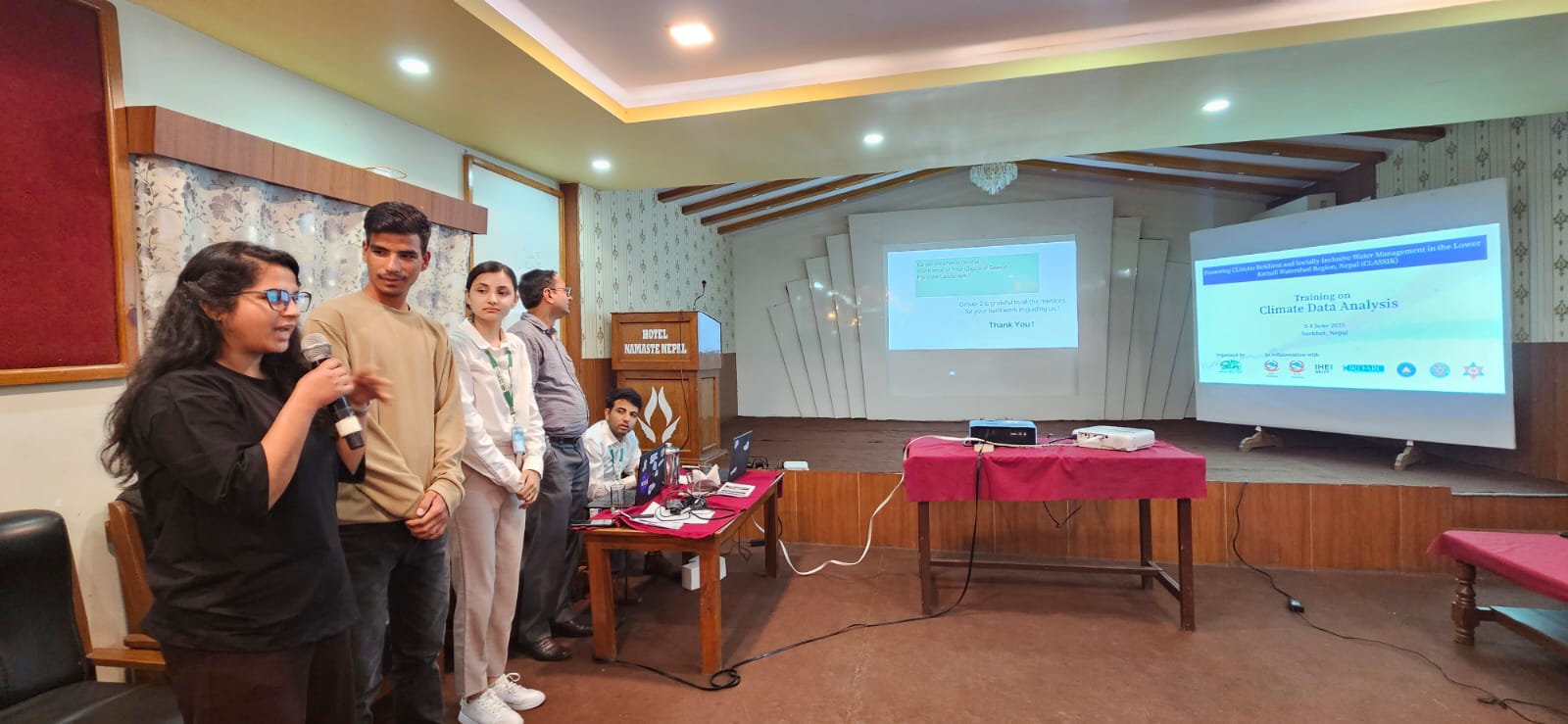 A key component of the training was the hands-on analysis of Nepal’s precipitation data, where participants calculated trends, visualized precipitation patterns, and identified anomalies. In groups they carried out mini-project involving data acquisition, analysis and presented their results and outputs and received feedback from trainers and peers.