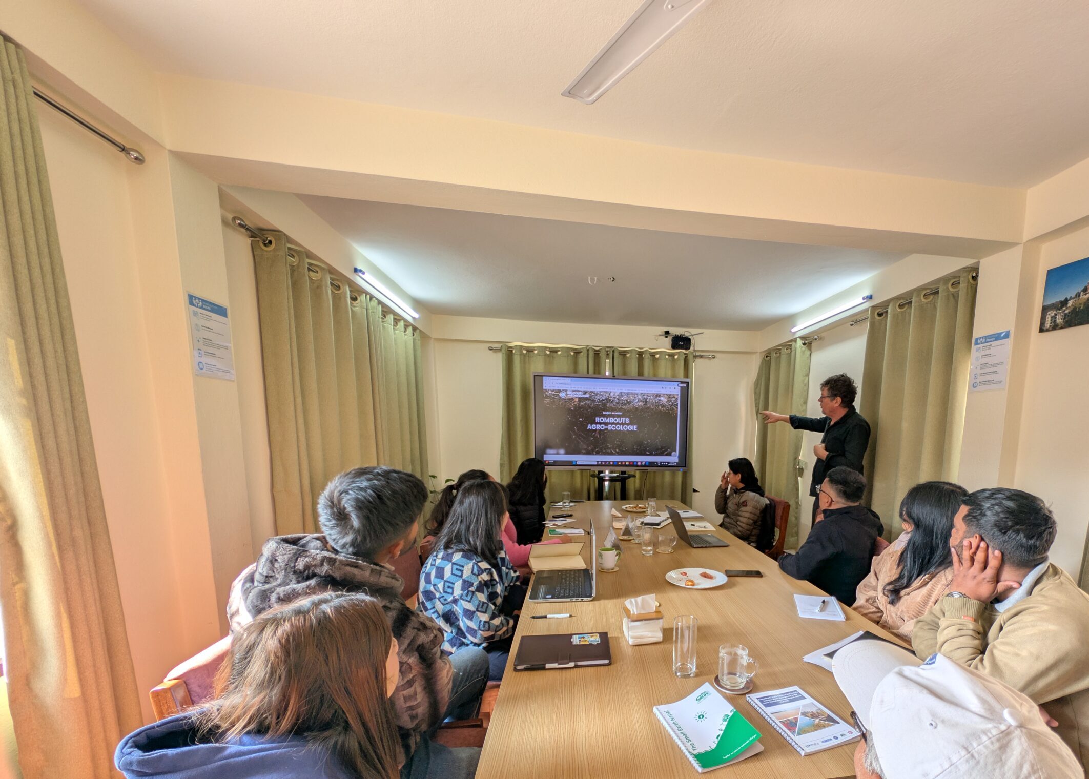 SEN and Dr. Rombouts found common ground through their shared interest and commitment to improving agroforestry, an area in which SEN has actively implemented projects in the past and continues to do so at present. Building on this shared vision, we explored opportunities for collaboration. Dr. Rombouts shared his experiences concerning agroecological practices and diversified agriculture possibilities in Nepal. He also underlined important differences in topography between the Netherlands and Nepal. Further, he emphasized how geographical conditions shape agricultural approaches in both countries. Dr. Rombouts discussed several practical measures for soil fertility improvement to sustain a healthy and resilient ecological system, including the use of organic matter, mulching and farming techniques that enhance soil structure and long-term productivity. He further illustrated the concept of Land Equivalent Ratio, whereby intercropping and agroforestry can contribute to increased crop production over a given area more than under monoculture, thus yielding more efficient use of land in a sustainable way. Overall, his insights were truly helpful and inspiring.