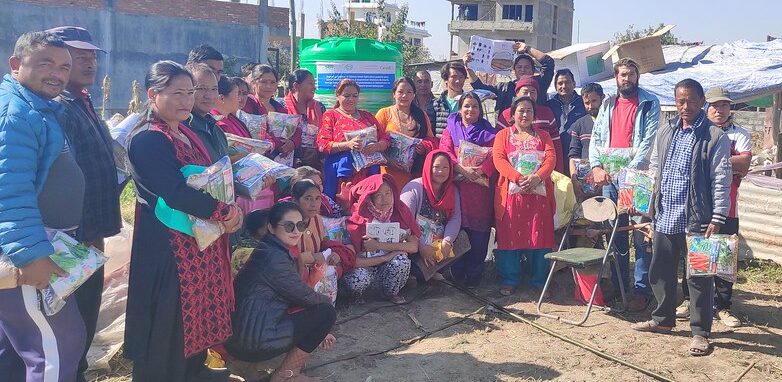 After providing the training, 25 smallholder female farmers were provided a package of improved vegetable seed varieties, jute for mulching, drip irrigation kits, biochar formation machines. The 12 types of improved vegetable seed varieties (Cauliflower, Mustard, Carrot, Radish, White turnip, Coriander, Spinach, Chamsur, Souf, Methi, Pakchoy, Pumpkin) that are suitable for the project area were identified after the consultation with the agro vets and the experts. All the 25 beneficiary farmers have used the CSA technologies in their farms.