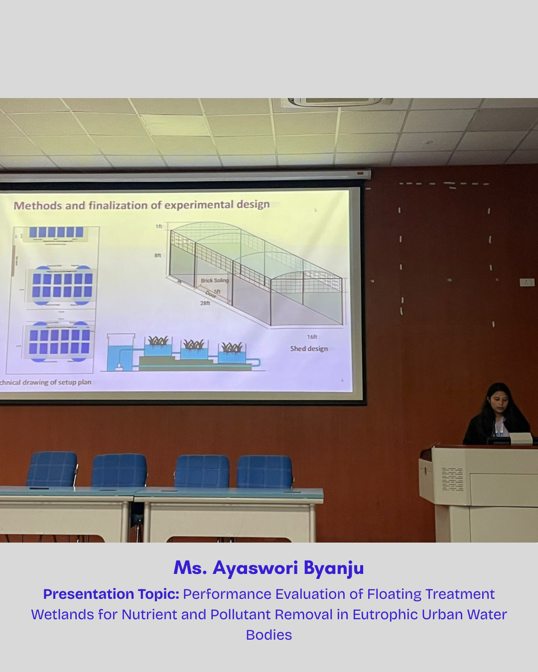The SEN team included Ashok GhimireAyaswori ByanjuSusa ManandharSushant DhitalSubhekshya PandeyMega MaskeyNamrata MishraNita Khatri and Bandana Koirala. Ms. Ayaswori Byanju received a Special Award for her outstanding presentation on “𝑃𝑒𝑟𝑓𝑜𝑟𝑚𝑎𝑛𝑐𝑒 𝐸𝑣𝑎𝑙𝑢𝑎𝑡𝑖𝑜𝑛 𝑜𝑓 𝐹𝑙𝑜𝑎𝑡𝑖𝑛𝑔 𝑇𝑟𝑒𝑎𝑡𝑚𝑒𝑛𝑡 𝑊𝑒𝑡𝑙𝑎𝑛𝑑𝑠 𝑓𝑜𝑟 𝑁𝑢𝑡𝑟𝑖𝑒𝑛𝑡 𝑎𝑛𝑑 𝑃𝑜𝑙𝑙𝑢𝑡𝑎𝑛𝑡 𝑅𝑒𝑚𝑜𝑣𝑎𝑙 𝑖𝑛 𝐸𝑢𝑡𝑟𝑜𝑝ℎ𝑖𝑐 𝑈𝑟𝑏𝑎𝑛 𝑊𝑎𝑡𝑒𝑟 𝐵𝑜𝑑𝑖𝑒𝑠”, a research project funded by Asia-Pacific Network for Global Change Research. Her work reflects the technical strength and innovation within the SEN research community.