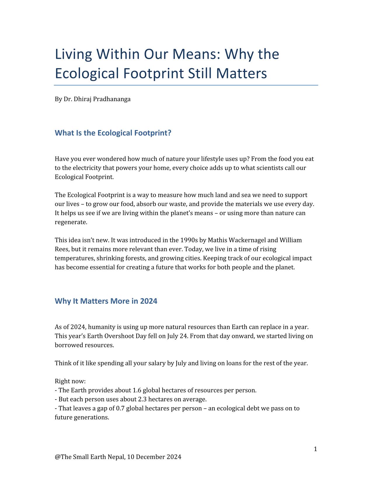 Living Within Our Means: Why the Ecological Footprint Still Matters